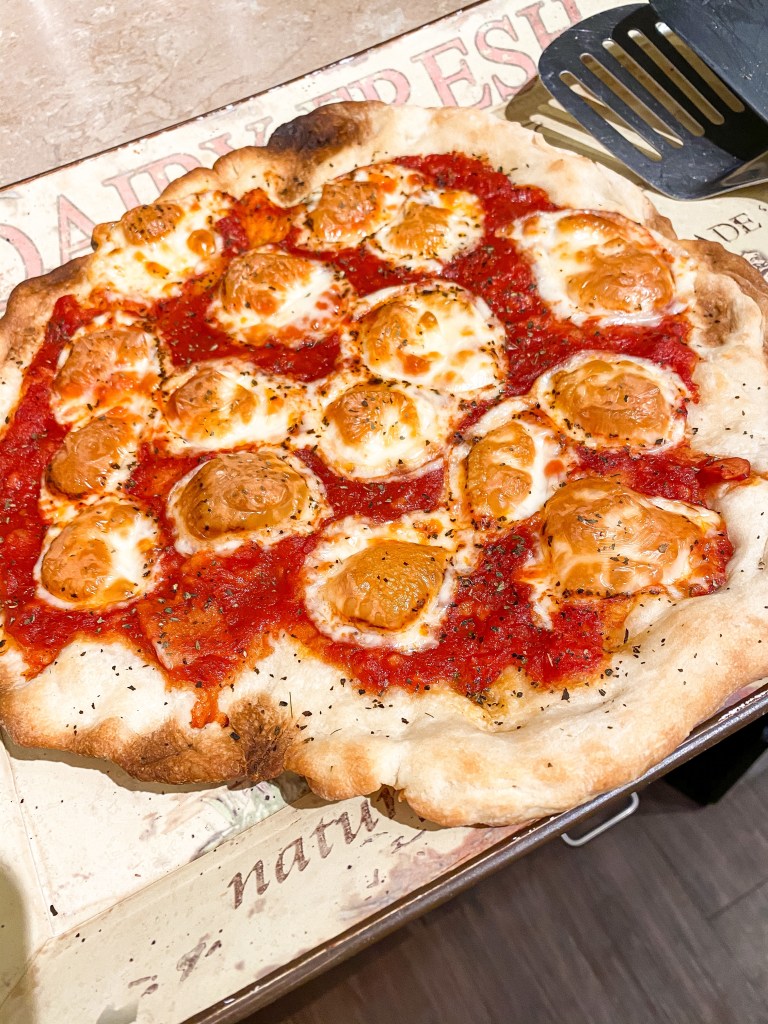 Usually this makes 3-4 medium to large pizza’s, but it depends on how much sauce you use on your pizza’s. If I have any leftover, I put it in a mason jar and refrigerate it for about a week and it’s still good to use for a second pizza night!