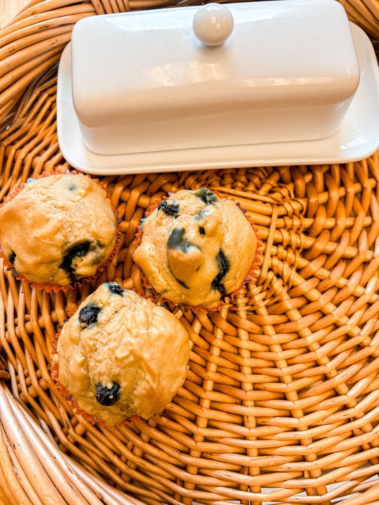 - To make these blueberry muffins vegan: Instead of two eggs, use two flax eggs. Mix together 2 tablespoons flaxseed meal + 6 tablespoons water in a bowl until smooth. Allow to sit for 5 minutes before using in the recipe.